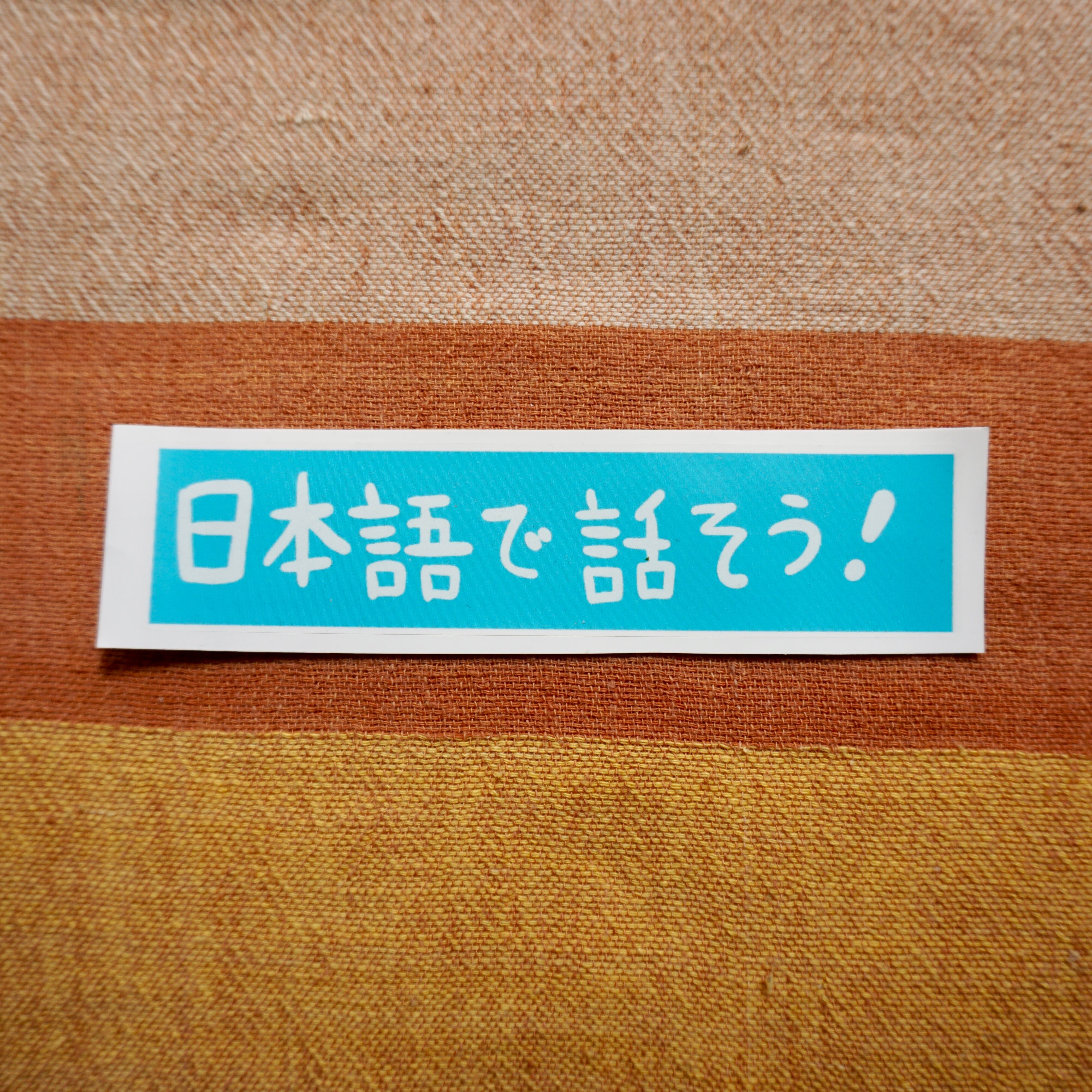 This sticker will help you to find (to be found) Japanese speakers, to start conversations in Japanese, and eventually make new friends.